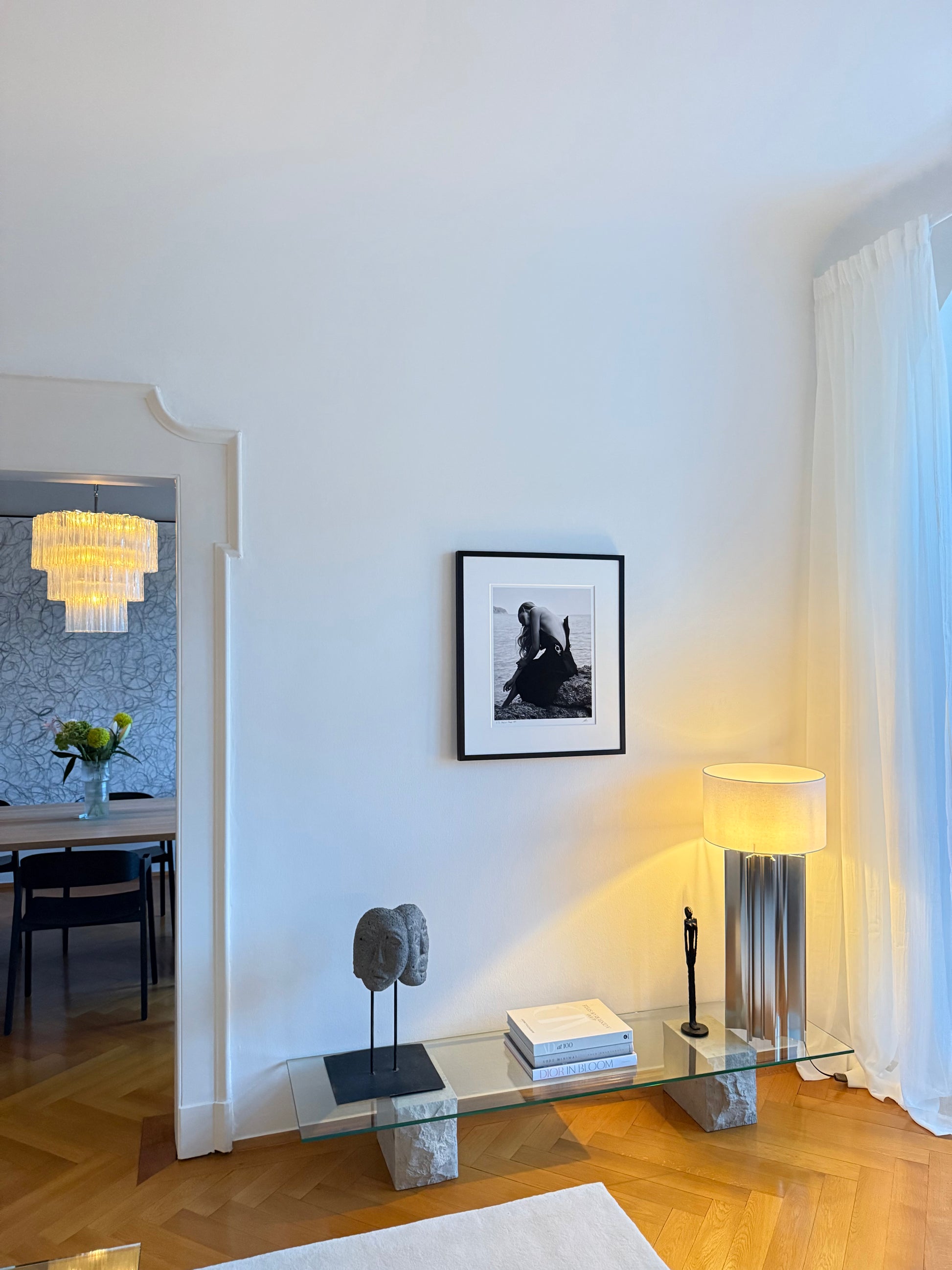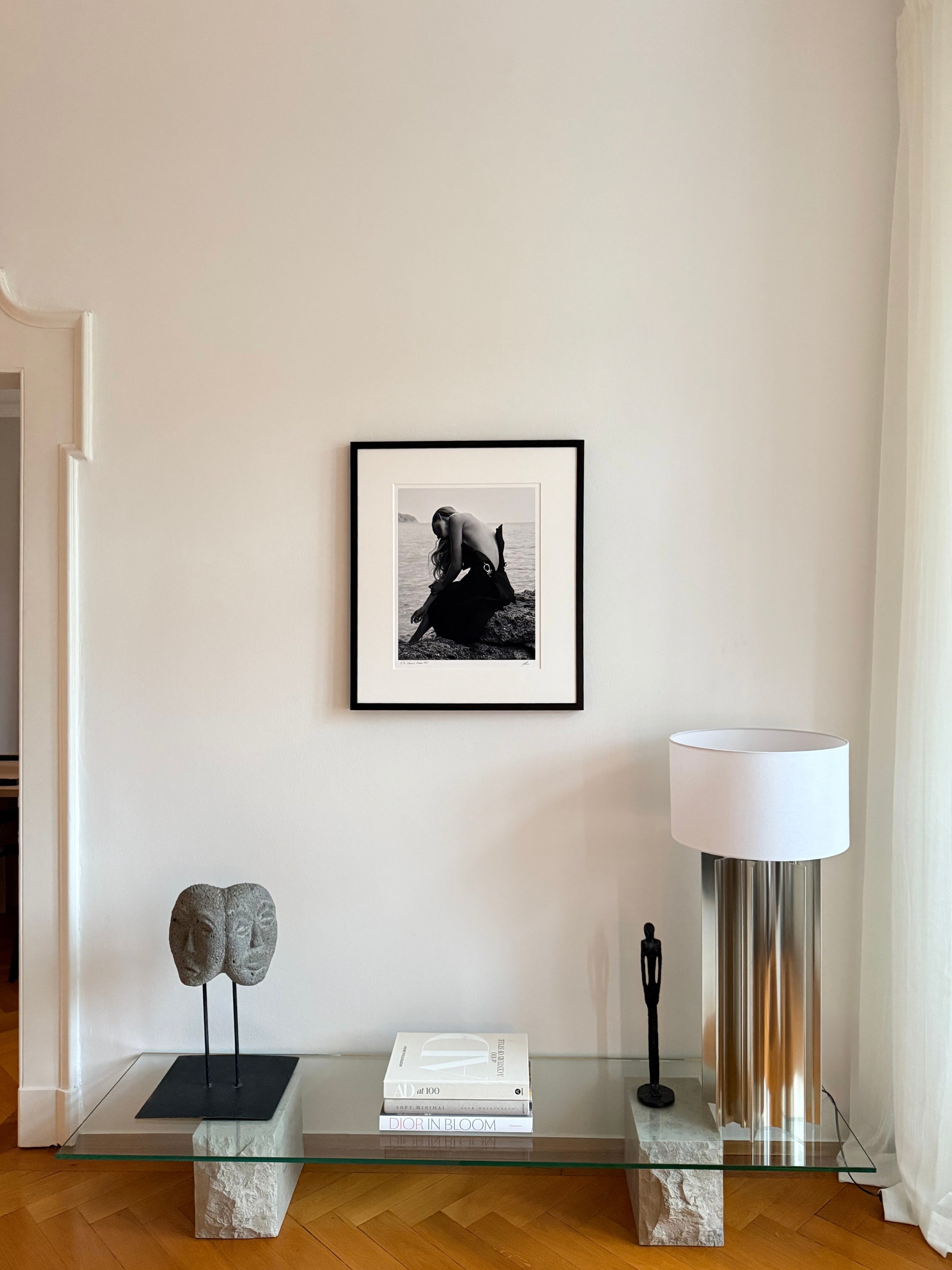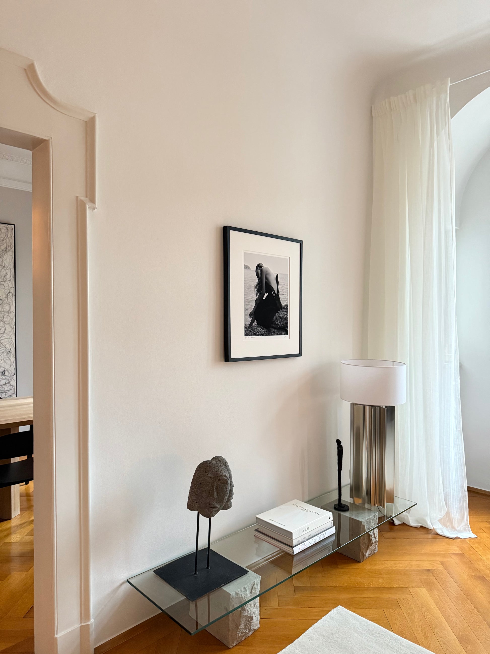 Gerahmt in massivem Vollholz – wahlweise schwarz offenporig lasiert mit sichtbarer Holzstruktur oder weiß lackiert.